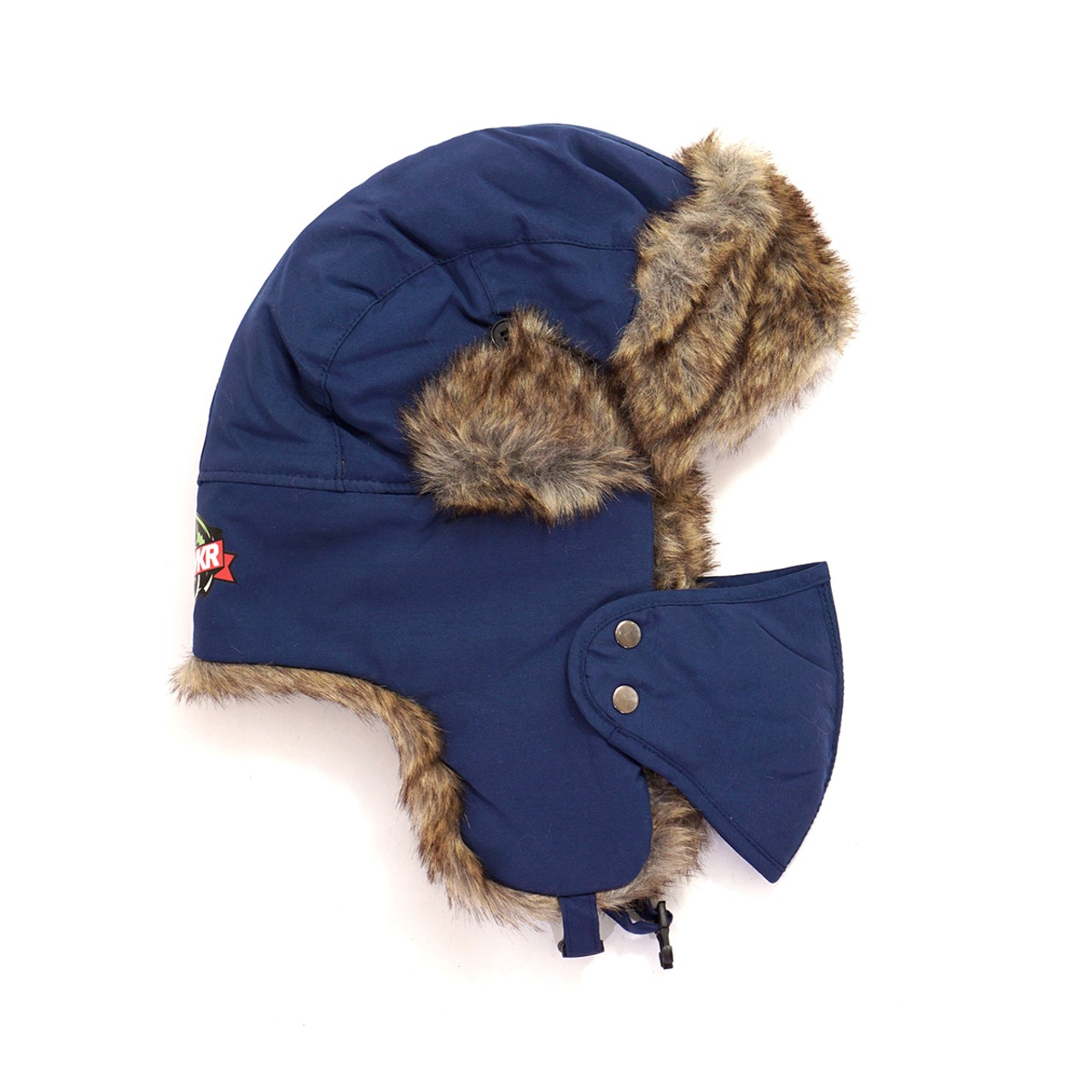 垂れた耳当ては先端のスナップ上部で固定も出来るので場面に応じて使い分けて下さい。